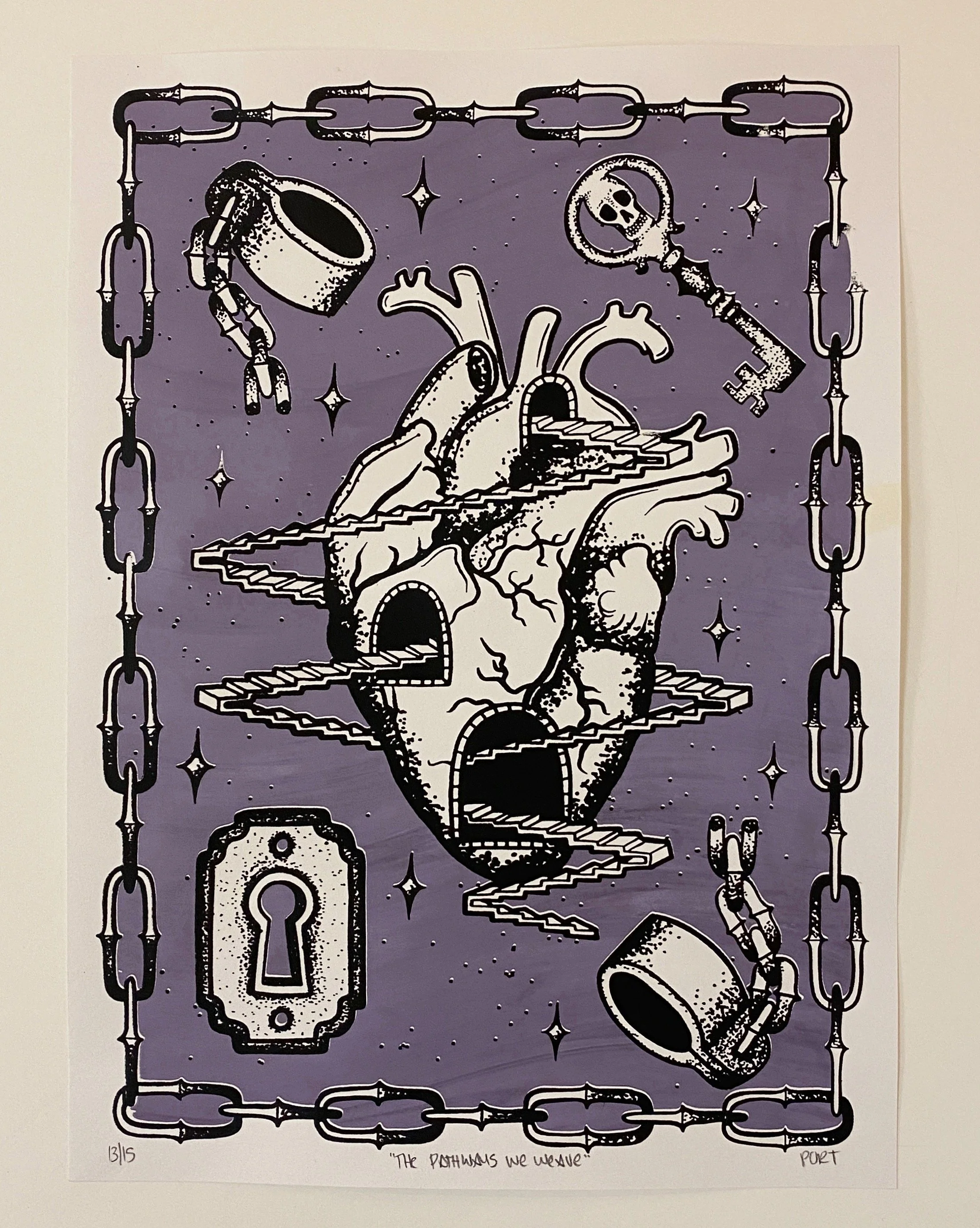 Categories: All pottery prints shop All | pottery | prints | Quick View "The Pathways We Weave" Screenprint $35.00 Sold out Quick View "Those That Haunt Us" Screenprint $35.00 Sold out Quick View "Welcome Home" Screenprint $15.00 Quick View "Space Case" Screenprint $20.00 Sold out Quick View "Nobody Gets Out Alive" Screenprint $15.00 Sold out Quick View "Cowgirl Blues" Screenprint $12.00 Sold out Quick View Individual Stickers $4.00 Sold out Quick View Sticker pack Sale Price: $10.00 Original Price: $12.00 Sold out Quick View Floral Shearling Jacket Sale Price: $80.00 Original Price: $100.00 Sold out Quick View The Lonesome Crowded Vest $80.00 Sold out Quick View Moon Jacket Sale Price: $80.00 Original Price: $100.00 Sold out Quick View Shit Luck Cream Hoodie $55.00 Sold out Quick View "You Can't Live There Forever: III" $40.00 Sold out Quick View "You Can't Live There Forever: II" $40.00 Sold out Quick View "You Can't Live There Forever: I" $40.00 Sold out Quick View "You Can't Live There Forever" set Sale Price: $100.00 Original Price: $120.00 Sold out Quick View Hand Painted Black Denim Jacket- Size L $100.00 Sold out Quick View Hand Painted Denim Jacket- Size M $80.00 Sold out Quick View Hand Painted Coaches Jacket- Size Small $65.00 Sold out Quick View "Look Mom, No Hands" Print $15.00 Sold out Quick View Hazard Warning- Mixed Media $60.00 Sold out Quick View Fogg- Mixed Media $30.00 Sold out Quick View "Feeding Line" - Mixed Media Etching $60.00 Sold out Quick View "72 Hours" Mixed Media Print $170.00 Sold out Quick View "Unmasked" - Mixed Media Print $150.00 Sold out